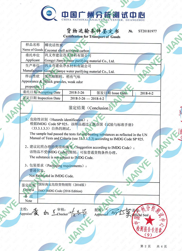 椰殼活性炭廣東分析檢測【建業(yè)凈水】